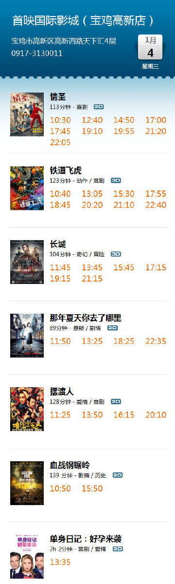 2、經濟發(fā)展:電影產業(yè)的發(fā)展也推動了寶雞的經濟發(fā)展,影院建設、電影票務、衍生品銷售等為當地創(chuàng)造了巨大的經濟效益。