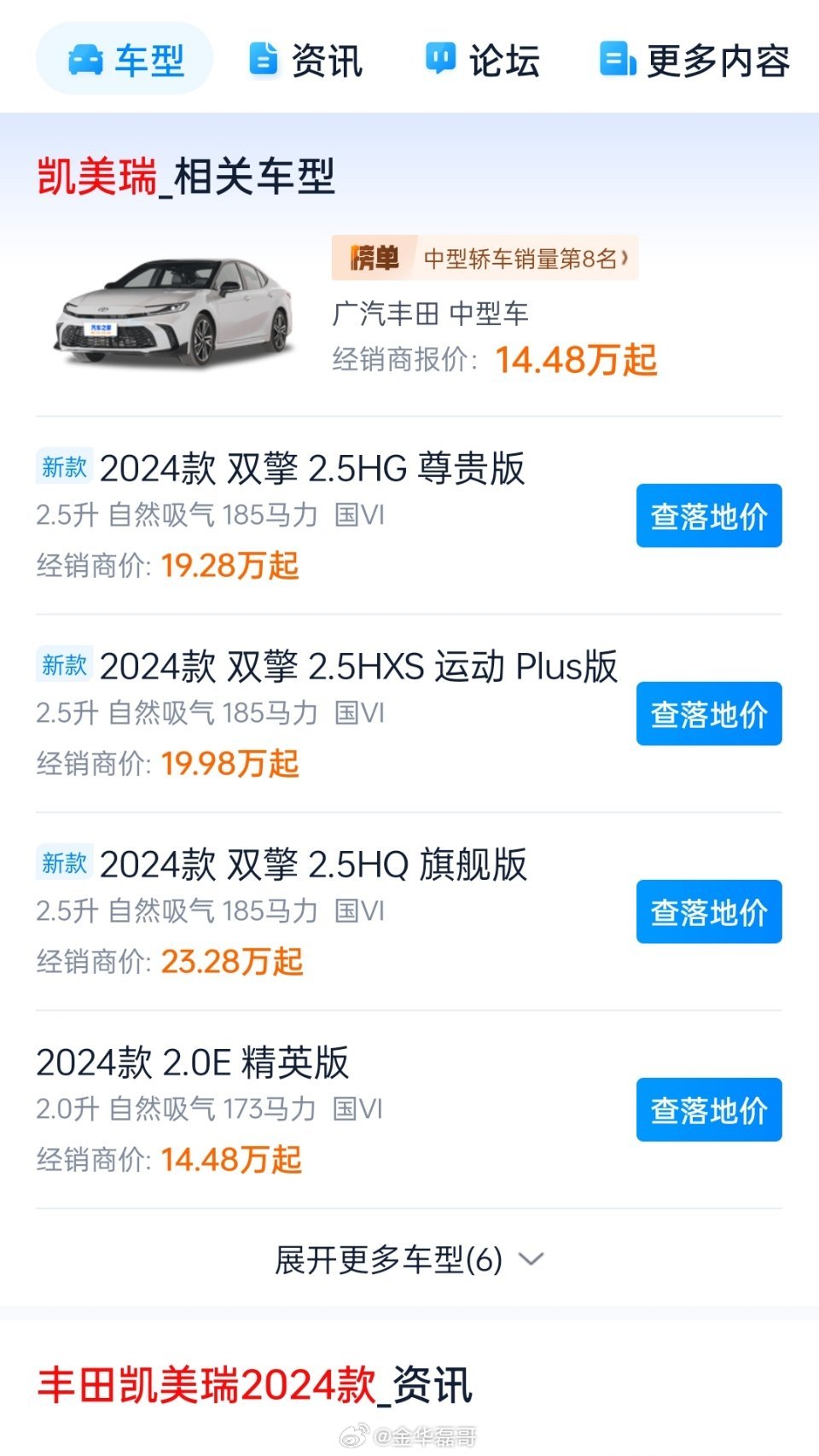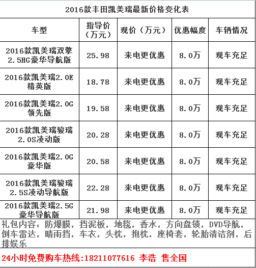 凱美瑞最新報價概述