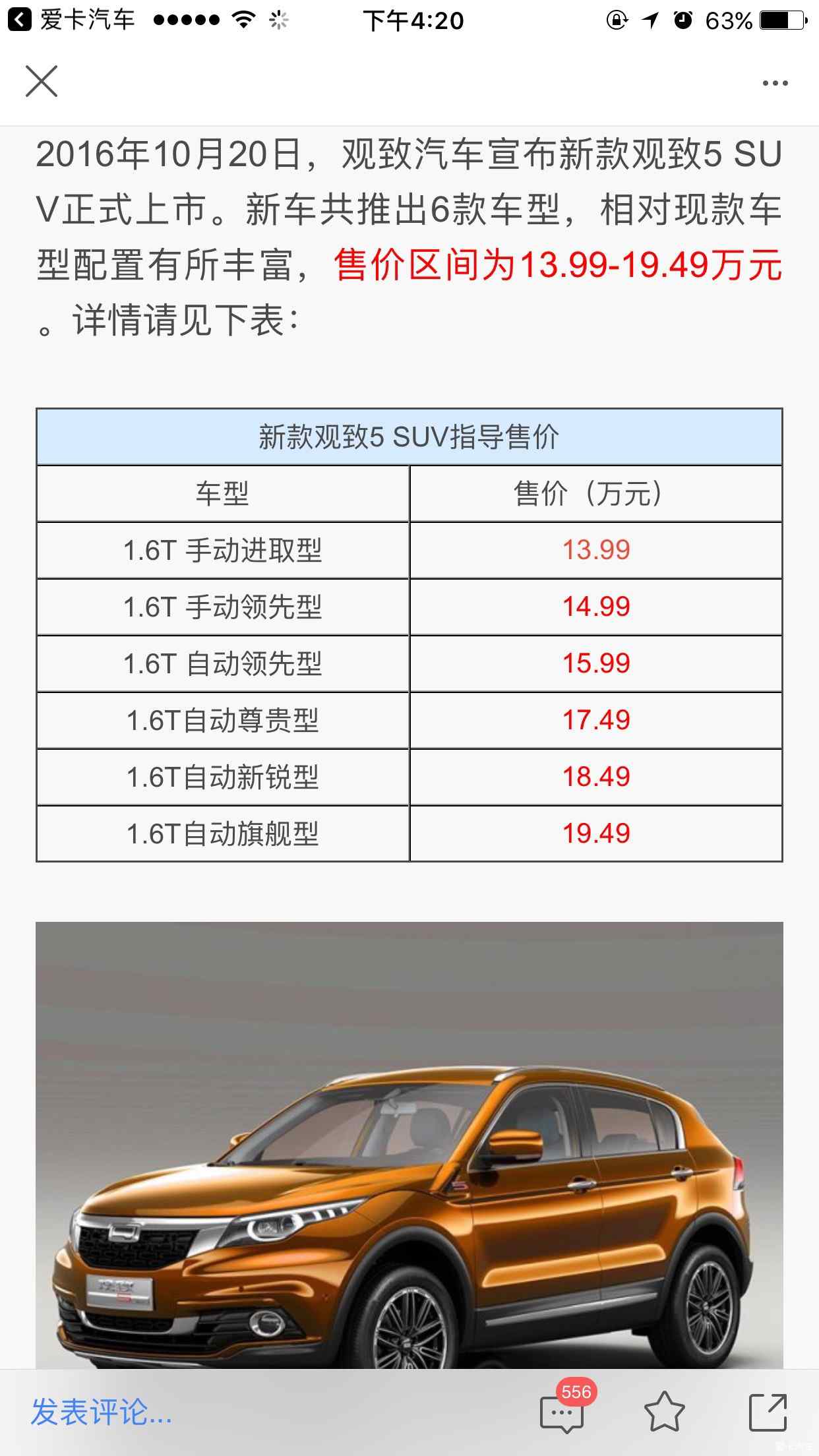 3、觀致5SUV旗艦型:約XX萬(wàn)元起