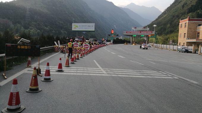 受近期降雨影響,都汶高速部分路段出現(xiàn)輕微水損,為確保行車安全,高速公路管理部門對受損路段進行緊急維修,期間實行臨時交通管制,提醒司乘人員減速慢行。