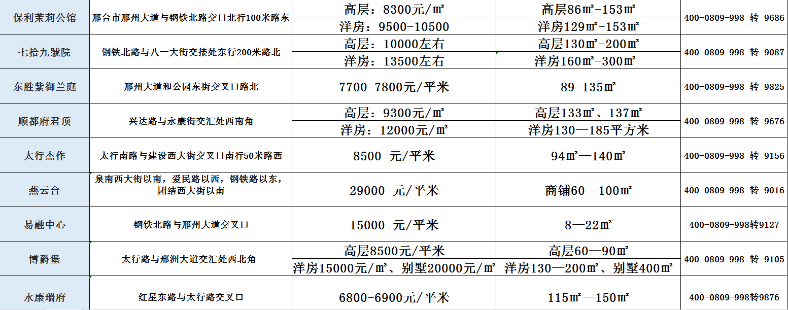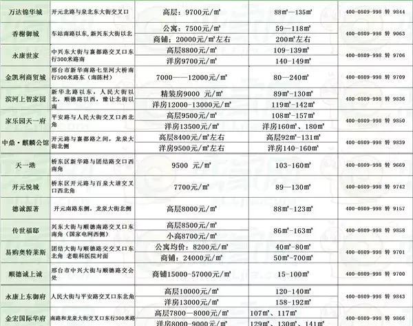 小明和朋友們?cè)缫鸭s好,這個(gè)周末要一起去邢臺(tái)探尋理想的房源,隨著工作的穩(wěn)定,他們開始考慮安家落戶的問題,關(guān)注房?jī)r(jià)、選房購房成了他們茶余飯后的熱門話題,這次看到新的房?jī)r(jià)報(bào)價(jià)表,小明心動(dòng)不已,決定提前了解市場(chǎng)情況。